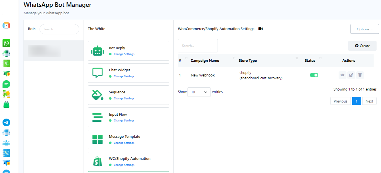 - Access the WooCommerce and Shopify Automation section in Efibot.